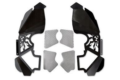 סט מיגוני פנימי קדמי מבית Poison Spyder בגימור שחור הוא שדרוג איכותי ל־Jeep Wrangler JK הכולל לוחות אלומיניום מעוצבים עם רשת איוורור, עיבודי CNC מדויקים וציפוי SpyderShell עמיד במיוחד, המספק גם מראה מרשים וגם חיזוק של קירור ועמידות בתנאי שטח קשים – התקנה מהירה ללא שינויים במסגרת המקורית של הרכב.